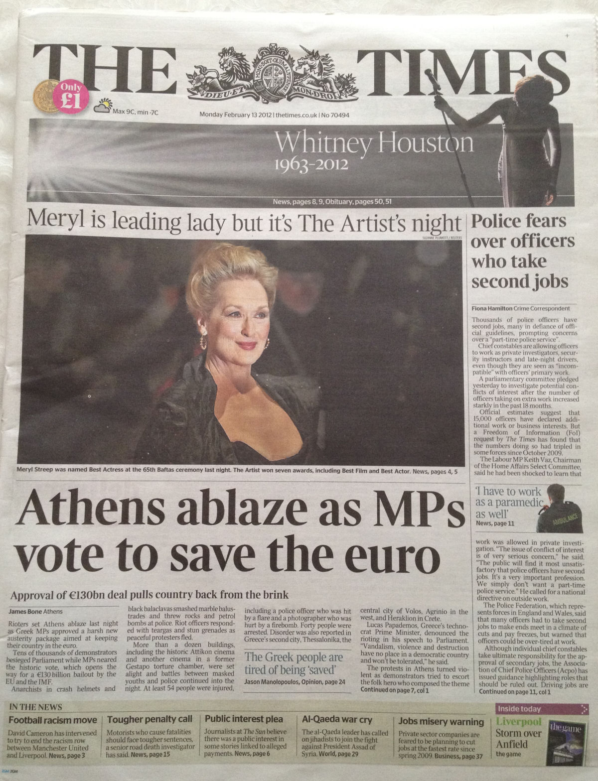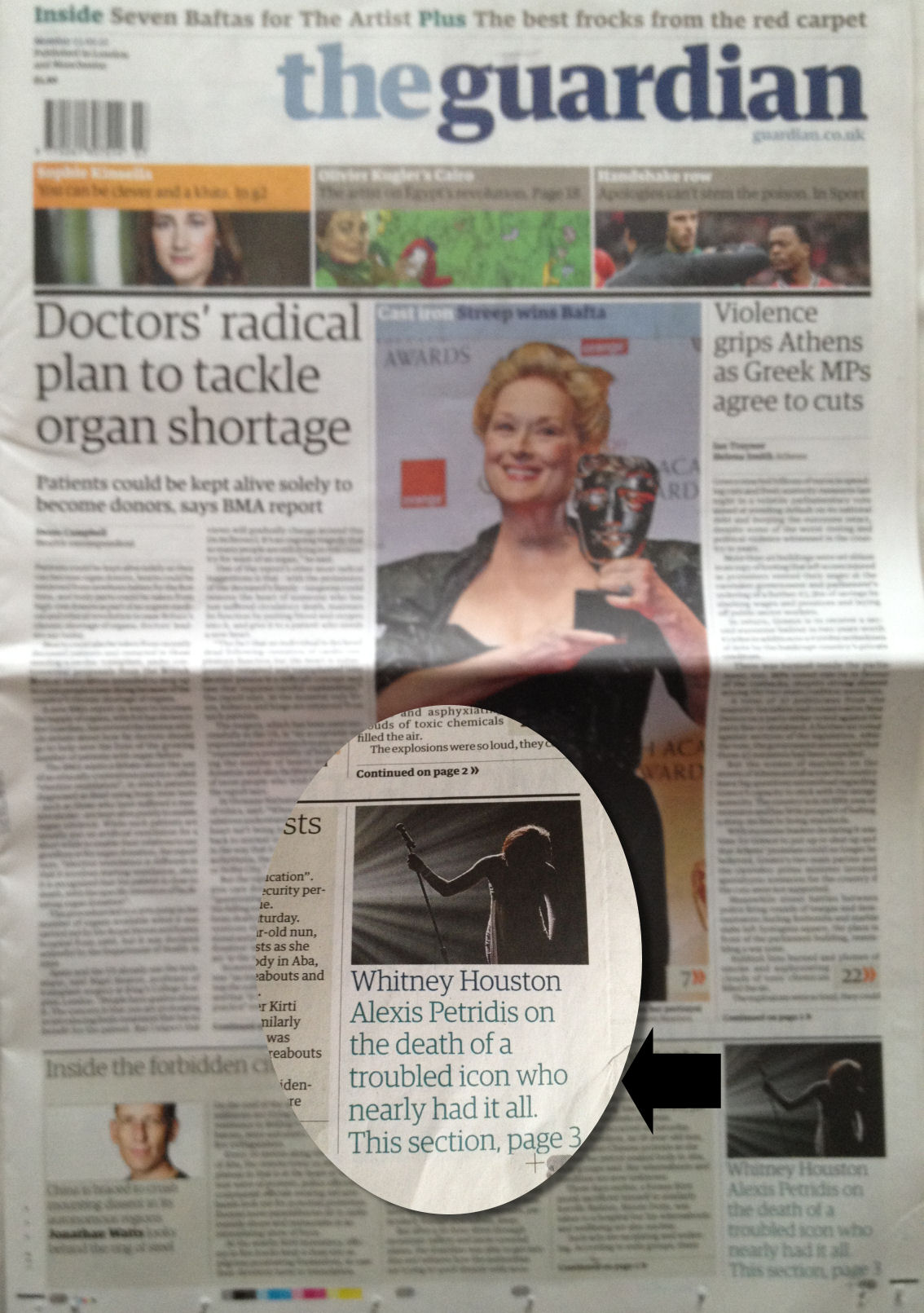 Whitney Houston 1963 - 2012 British Press Preview of Reporting Whitney Houston's Death